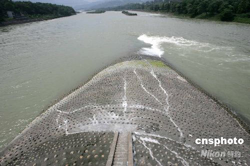 ·圖:四川都江堰魚嘴分水堤震后出現裂縫(6月6日 08:57)