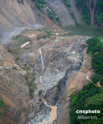 ·圖:唐家山堰塞湖開始泄流(6月7日 12:59)