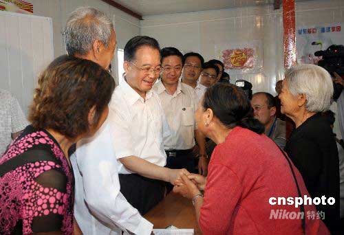 ·圖:溫家寶慰問綿陽居民疏散安置點群眾(6月7日 14:06)