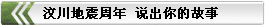 1年過去了,相比災(zāi)難,更讓我們銘記的是災(zāi)難面前中國人的堅(jiān)強(qiáng)、勇氣和愛。請寫下您和汶川地震的故事,傳遞“萬眾一心、眾志成城,不畏艱險(xiǎn)、百折不撓,以人為本、尊重科學(xué)”的抗震精神……