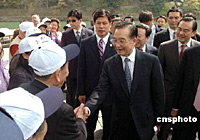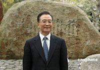 安倍晉在首相官邸庭院歡迎溫家寶總理