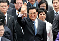 胡錦濤主席向歡迎的人群致敬