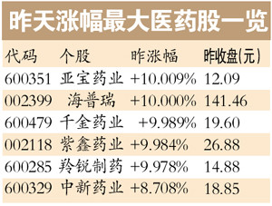 近日,國(guó)家工信部、衛(wèi)生部、國(guó)家食品藥品監(jiān)督管理局聯(lián)合發(fā)布《關(guān)于加快醫(yī)藥行業(yè)結(jié)構(gòu)調(diào)整的指導(dǎo)意見(jiàn)》,支持我國(guó)醫(yī)藥產(chǎn)業(yè)發(fā)展。并且對(duì)于對(duì)大型企業(yè)跨省(區(qū)、市)重組后的改擴(kuò)項(xiàng)目?jī)?yōu)先予以核準(zhǔn),在股票發(fā)行、企業(yè)債券、中期票據(jù)以及銀行貸款方面給予支持,從而提高整個(gè)行業(yè)的產(chǎn)業(yè)集中度,培養(yǎng)大型醫(yī)藥集團(tuán),提高醫(yī)藥產(chǎn)業(yè)集中度。受此消息影響,昨天醫(yī)藥板塊表現(xiàn)十分搶眼。