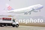 載有春節(jié)返鄉(xiāng)探親臺商及其眷屬"華航"包機飛離浦東機場