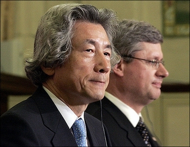 日本首相小泉訪問渥太華期間,9個反戰團體6月28日在溫哥華日本領事館門前示威抗議,高呼反戰口號,要求日本政府正視二戰歷史,終止修改憲法第九條。抗議團體的代表向日本領事館遞交了一封給小泉的公開信,指摘小泉參拜靖國神社傷害東亞鄰國的和平友好關系,并違反“舊金山條約”....<全文>