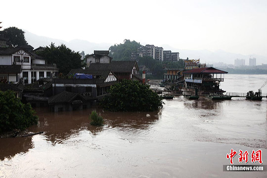 長江今年最大洪峰過境 重慶古鎮磁器口半城被淹