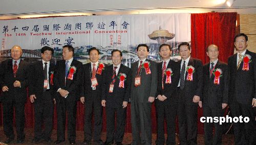 為參加將于十一月三日開幕的第十四屆國際潮團聯誼年會,中國國務院僑務辦公室副主任馬儒沛抵達悉尼。圖為馬儒沛(右五)與大會組委會主席周光明(右六)等合影。中新社發 葛明 攝