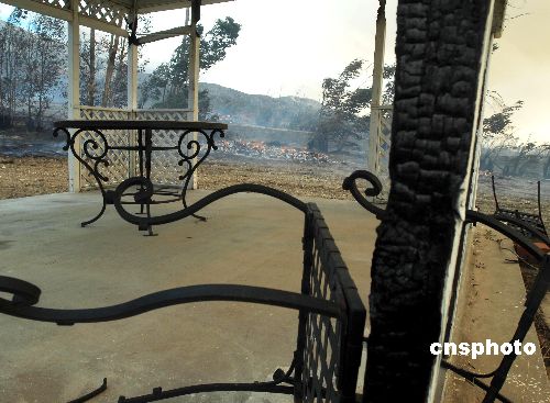 美國南加州大火十一月初還有一小部分被控制在圣地牙哥和橙縣,災區一片殘敗景象,而第二波熱風本周末興起,當局已提高警惕嚴防火災死灰復燃。中新社發 賈國榮 攝
