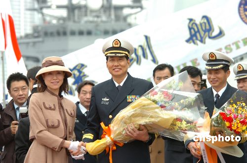 圖:中國海軍“深圳”號抵日訪問受到熱烈歡迎