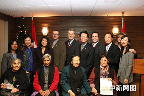 加拿大史維會等機構代表與四名在國會山作證的“慰安婦”幸存老人合影。