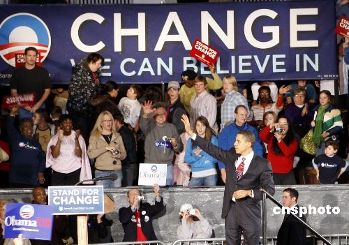 美國愛荷華州1月3日拉開2008年大選初選的序幕,人氣正旺的民主黨參選人奧巴馬,2日在艾奧瓦州西達(dá)拉皮茲市爭取選民支持。中新社發(fā) 李靜 攝