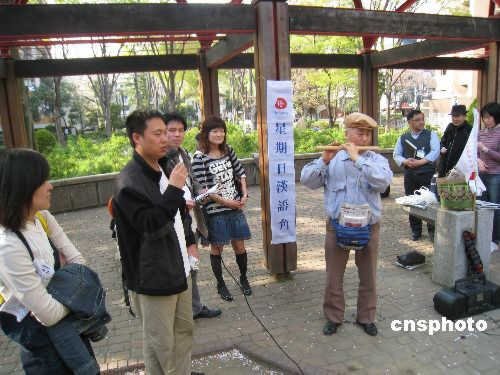 4月6日,日本僑報社創辦的星期日漢語角在東京西池袋公園舉行第34次交流活動。參加者用日中兩國語言演唱了《北國之春》、《大海啊故鄉》等中日名曲,贏得在場人員的陣陣掌聲。中新社發 段躍中 攝