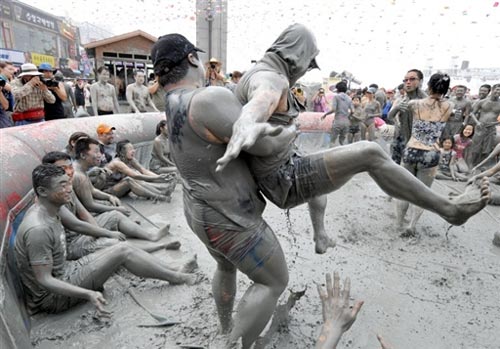 圖:韓國(guó)保寧泥漿節(jié) 游客盡情“美容”