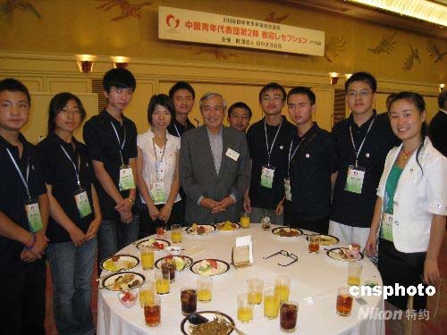7月23日,2008年第二批中國青年訪日代表團一行327人抵達東京,開始為期七天的訪日行程。日本財團法人日中友好會館當晚在東京舉行招待會,歡迎以中華全國青年聯(lián)合會主席助理倪健為總團長的代表團訪日。第二批中國青年代表團分成大學生、科技、醫(yī)療衛(wèi)生、能源、環(huán)境、青年團體領導人、青年公務員及四川地震災區(qū)青少年8個分團。他們將赴東京、神奈川、大阪、兵庫、福島、山梨等地參觀訪問,與日本青年交流,并體驗日本家庭生活。中新社發(fā) 段躍中 攝