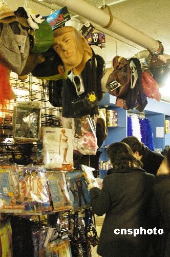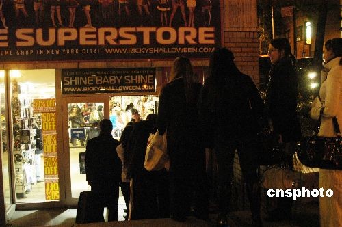 10月31日是西方傳統(tǒng)的“鬼節(jié)”萬圣節(jié)。30日晚,在曼哈頓三十八街與三大道交界,一家專售萬圣節(jié)服裝的商店外,紐約市民連夜排隊購置“鬼裝”,為萬圣節(jié)狂歡做準(zhǔn)備。商家也不失時機的打出“五折”字樣,希望在節(jié)日前賺個盆滿缽滿。盡管美國經(jīng)濟(jì)不景氣,仍沒有影響人們過萬圣節(jié)的好心情。中新社發(fā) 魏晞 攝