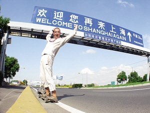 在來(lái)到瑞士之后,托馬遜感覺(jué)到騎車(chē)太乏味,于是靈光乍現(xiàn),決定用一塊4輪滑板代步。按照托馬遜的原計(jì)劃,他打算從英國(guó)直飛新西蘭回國(guó)。可是到達(dá)英國(guó)后,他卻深深地迷戀上了滑板運(yùn)動(dòng),決定“一滑到底”。據(jù)了解,托馬遜每天背著15公斤重的背包,平均每天滑行5到7小時(shí),由于風(fēng)向和路況不同,每天行程60到120公里不等。結(jié)束了長(zhǎng)達(dá)7000公里的歐美之行后,他開(kāi)始朝著旅途的最后一站——中國(guó)進(jìn)發(fā)。他從哈薩克斯坦邊境滑進(jìn)中國(guó)境內(nèi)的新疆西北部,然后又經(jīng)過(guò)青藏高原,最后來(lái)到繁華的大上海。