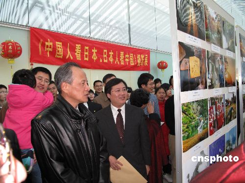 2009年1月28日,中國駐日本大使崔天凱和在此歡度春節的一百多名中國留學生觀看了“中國人看日本,日本人看中國”。該攝影展由全日本中國留學人員友好聯誼會主辦,春節期間在日本富士山畔的富士急Highland藝術廳舉行。中新社發 段躍中 攝