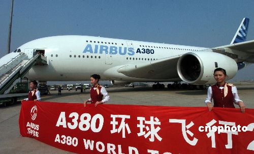 圖:空客A380環球飛行之旅抵達廣州