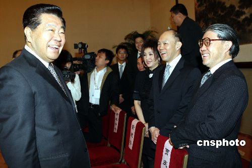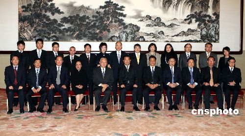 圖:賈慶林會(huì)見霍英東先生親屬并合影留念