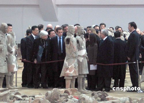 圖:法國總統(tǒng)薩科齊參觀秦兵馬俑博物館
