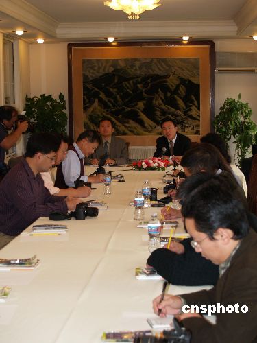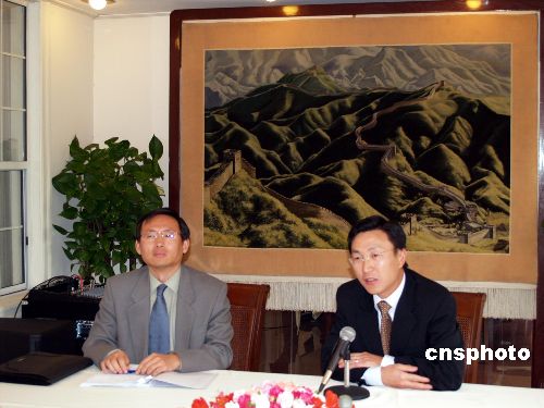 11月28日,中國駐洛杉磯總事館實行新聞發(fā)言人制度,將每月舉行一次新聞發(fā)布會,廣邀美國主流媒體及華文媒體記者參加。在首次新聞發(fā)布會上,副總領事許朝友和新聞發(fā)言人陳世杰,就保護中國公民、北京奧運海外志愿者報名手續(xù)等問題回答了記者的提問。中新社發(fā) 盧威 攝