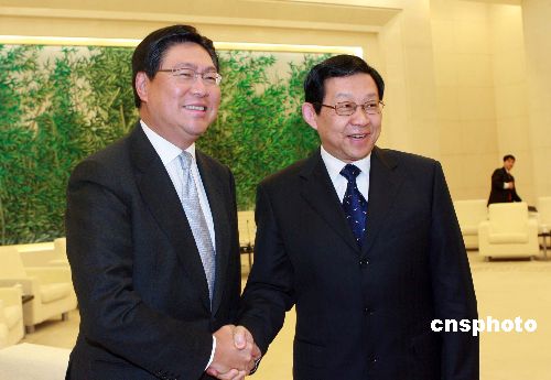 一月二十五日,中國商務部部長陳德銘在北京會見香港商務及經濟發展局長馬時亨一行。中新社發 廖文靜 攝