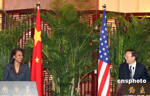 圖:楊潔篪與美國國務卿賴斯共同會見記者