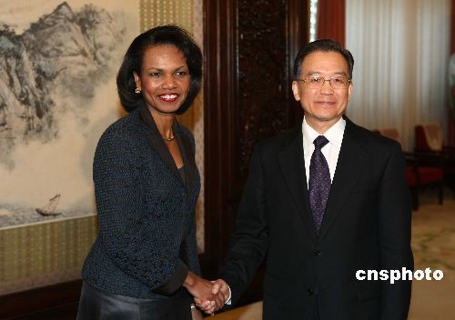 快訊:中國總理溫家寶會見美國國務(wù)卿賴斯
