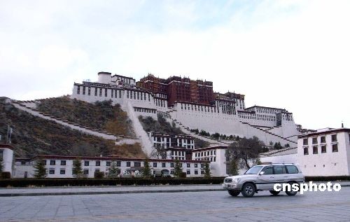 3月19日,一輛汽車駛過拉薩布達(dá)拉宮廣場。目前,拉薩市區(qū)各個路段車輛自由通行,大部分商店恢復(fù)營業(yè),高校以及中小學(xué)正常上課,社會秩序基本恢復(fù)正常。中新社發(fā) 廖攀 攝