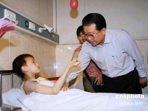 圖:李長春在四川慰問災(zāi)區(qū)兒童
