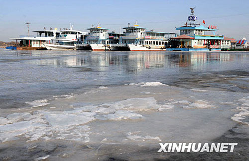 11月16日,哈爾濱市輪渡公司的所有渡客船全部安全返航,停泊在哈爾濱市道里區九站船塢。當日,哈爾濱市輪渡公司渡客408船帶著碼頭船,從哈爾濱市道外碼頭返回到道里九站船塢,這標志著運行在松花江上的所有客貨輪全線停航。據了解,受寒冷空氣影響,松花江沿線氣溫驟降,江水開始結冰進入封江期。 新華社發(張清云 攝)
