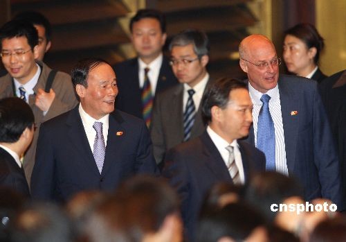 12月4日上午,第五次中美戰(zhàn)略經(jīng)濟對話在北京釣魚臺國賓館開幕,中國國務(wù)院副總理王岐山和美國財政部長保爾森作為兩國元首的特別代表共同主持對話。 中新社發(fā) 盛佳鵬 攝