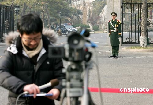 12月8日,新一輪朝核問題六方會談代表團團長會將于當日下午在北京舉行。此次會談是在今年7月以后時隔5個月舉行,韓、朝、美、中、俄、日六國代表團長將商討核驗證議定書的問題和棄核第二階段時間表等。圖為在釣魚臺國賓館門外等候會議開始的記者。中新社發(fā) 富田 攝