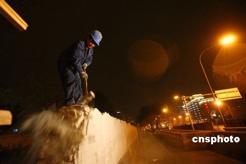 3月20日23時左右,長安街道路大修工程正式啟動。據(jù)悉,這是十余年來長安街首次大修,預(yù)計(jì)8月30日完工。伴隨此次道路大修,將同步進(jìn)行交通工程、綠化整治和公交優(yōu)化,并對建國門立交橋進(jìn)行橋面翻新和結(jié)構(gòu)加固,對沿線多處地下通道出入口進(jìn)行延長調(diào)整,實(shí)現(xiàn)長安街復(fù)興門至建國門路段五上五下雙向十車道的規(guī)劃。為最大限度減少施工對城市交通及市民的影響,施工主要集中在夜間進(jìn)行,白天交通不受影響。中新社發(fā) 富田 攝
