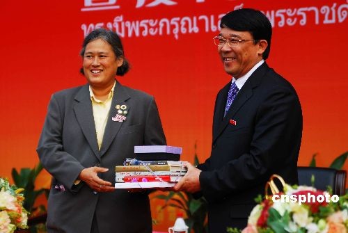 4月7日,泰王國(guó)瑪哈扎克里·詩(shī)琳通公主殿下和廈門(mén)大學(xué)黨委書(shū)記朱之文互贈(zèng)禮品。當(dāng)日,瑪哈扎克里·詩(shī)琳通公主殿下出席廈門(mén)大學(xué)泰國(guó)文化節(jié)開(kāi)幕式。此次廈門(mén)大學(xué)泰國(guó)文化是廈門(mén)大學(xué)建校88周年紀(jì)念的系列活動(dòng)之一,旨在促進(jìn)中泰文化友好交流。瑪哈扎克里·詩(shī)琳通公主殿下在開(kāi)幕式上用中文致辭,對(duì)中泰文化交流予以積極的肯定。中新社發(fā) 周運(yùn)杰 攝