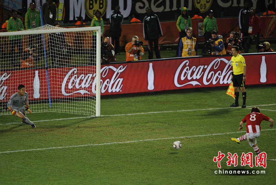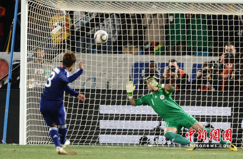 29日晚,南非世界杯1/8決賽第七場比賽比勒陀利亞的洛夫托斯球場拉開戰(zhàn)幕,由巴拉圭隊迎戰(zhàn)日本隊。120分鐘比賽結束時,雙方均沒有建樹,場上比分始終保持在0-0。在殘酷的點球大戰(zhàn)中,巴拉圭隊五罰全中,以5-3擊敗日本,挺進八強。