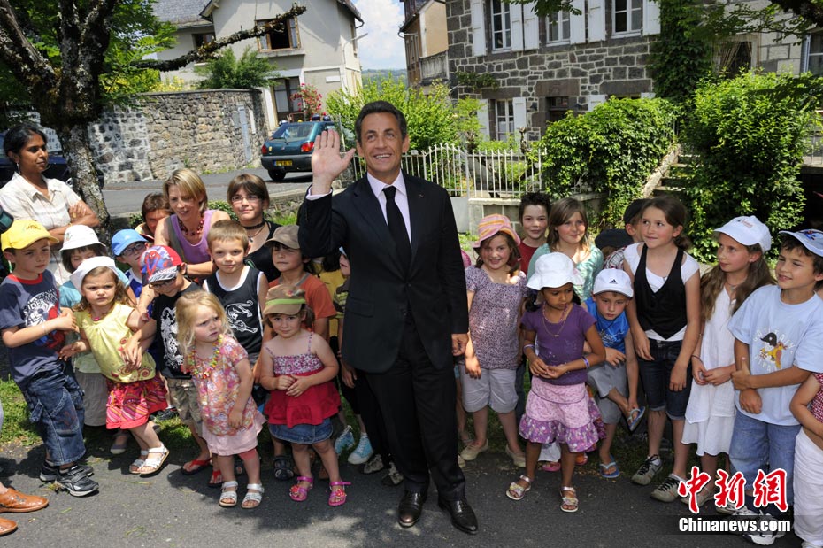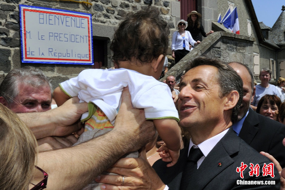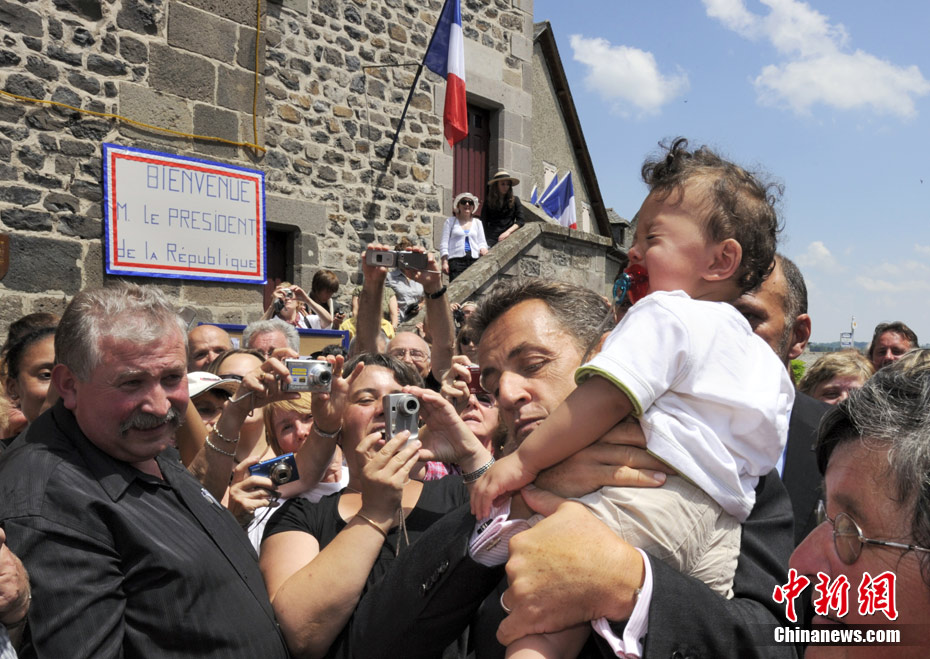 當?shù)貢r間7月1日,法國總統(tǒng)薩科齊來到法中部城鎮(zhèn)Mur-de-Barrez視察,與當?shù)孛癖娏憔嚯x接觸.他從民眾手中抱起一個叼著奶嘴的小嬰兒,不知是何原因,小寶貝竟然大哭起來。