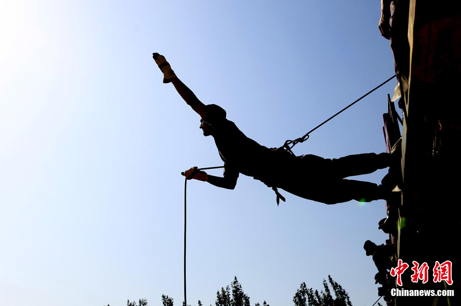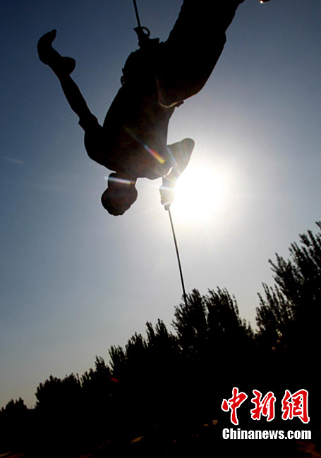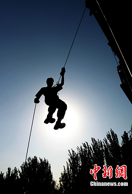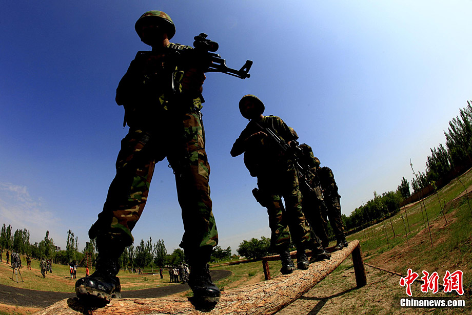 7月初,代號“友誼—2010”的中國巴基斯坦反恐聯(lián)合訓(xùn)練在中國寧夏青銅峽地區(qū)展開,此次訓(xùn)練主要以邊境地區(qū)山地聯(lián)合反恐作戰(zhàn)為課題。中巴雙方都派出了反恐精英參訓(xùn),各投入了一個連的特種作戰(zhàn)兵力,共200多人。這是中國與巴基斯坦兩國軍隊繼2004年和2006年,先后在中國以及巴基斯坦境內(nèi)舉行反恐聯(lián)訓(xùn)聯(lián)演活動之后,舉行的第三次反恐聯(lián)合訓(xùn)練。這次反恐聯(lián)訓(xùn)分“展示交流”、“混編同訓(xùn)”和“綜合演練”三個階段進行。中新社發(fā) 杜洋 攝