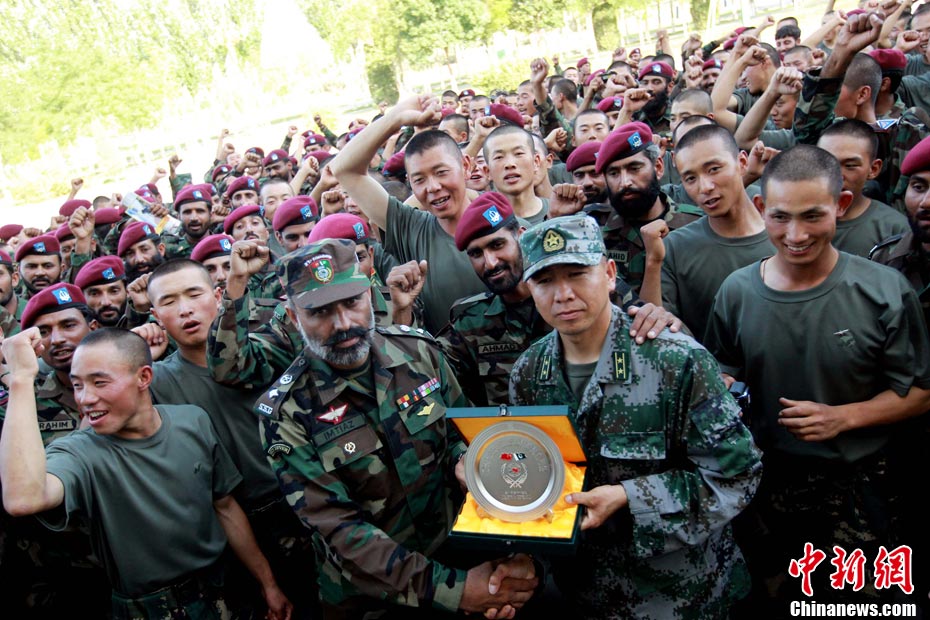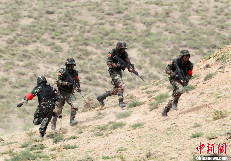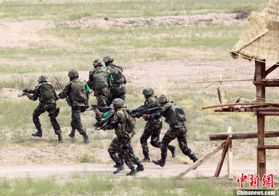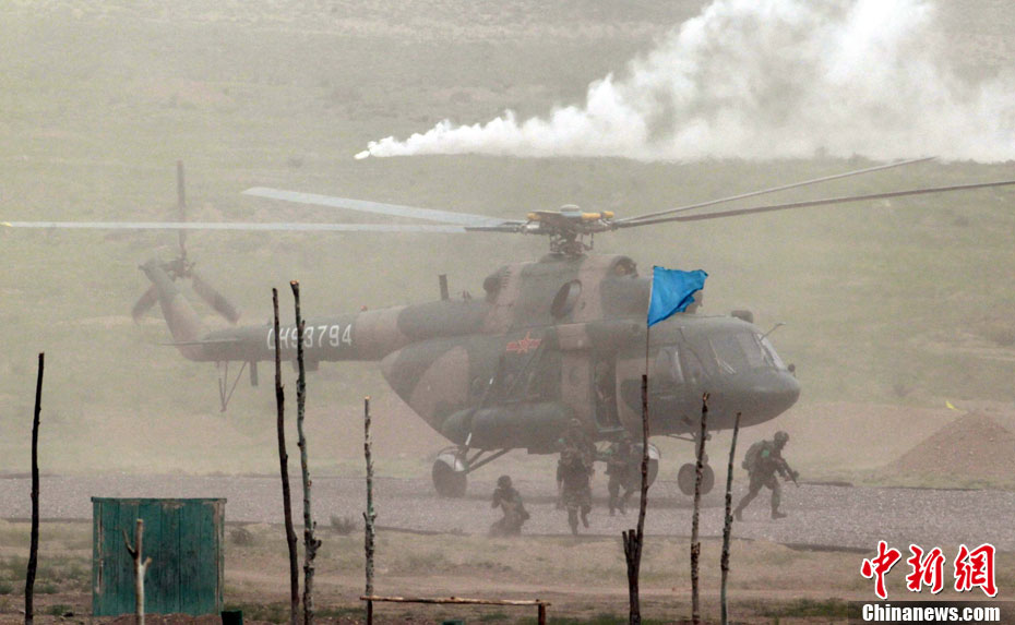 7月9日,友誼-2010”中巴反恐聯訓在蘭州軍區某訓練基地舉行實兵實彈演練,演練設計的背景是,對潛入中巴邊境地區實施襲擊破壞的國際恐怖分子進行聯合打擊。圍繞“邊境地區山地聯合反恐作戰”這一課題,演練了遠程投送、偵察監視、立體封控、精確打擊、解救人質、搜剿圍殲6個行動。這次反恐聯演的一個亮點,就是首次空地協同,聯合打擊,由地面反恐特戰人員引導殲轟機、武裝直升機實施空中火力突擊,采取精打要害的戰法,以建制內的火器對恐怖分子營地重要目標實施火力打擊。中新社發 杜洋 攝
