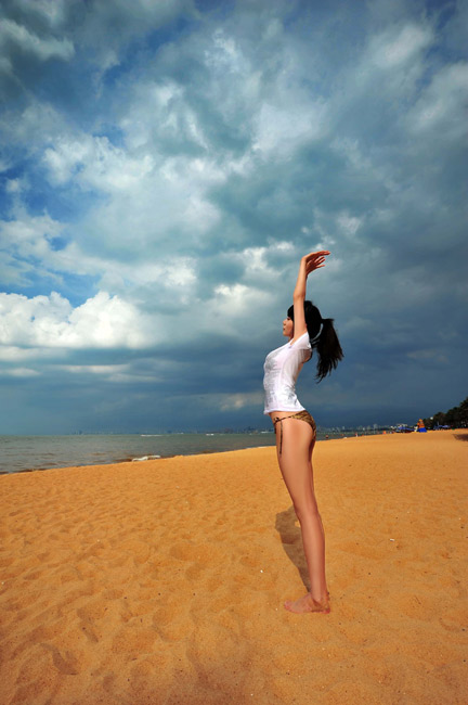 近日,清純美女排球寶貝孟瞳迪身穿火辣比基尼在沙灘上玩起了排球,一件白色襯衣加粉嫩金色的比基尼將孟瞳迪的傲人身材盡情展示。