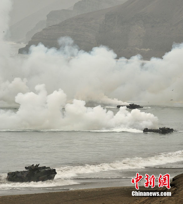 7月19日,美國(guó)與秘魯、阿根廷、巴西、哥倫比亞、墨西哥和烏拉圭等10國(guó)海軍一起在秘魯首都利馬北部的安孔港展開(kāi)一場(chǎng)代號(hào)為“SE/POA 10”的聯(lián)合兩棲登陸演習(xí)。