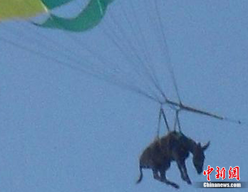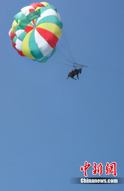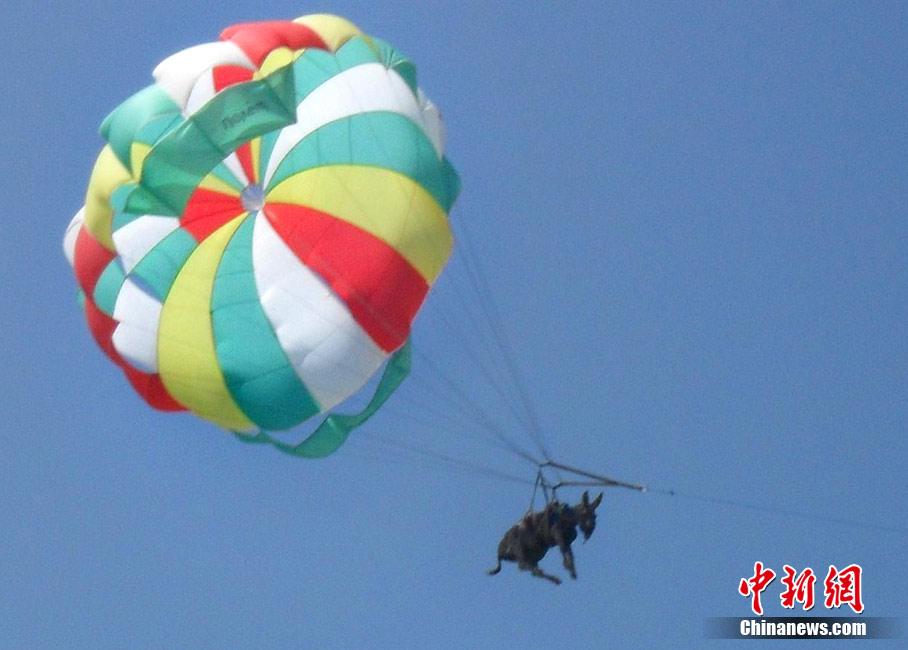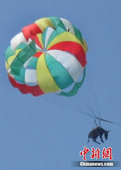 俄羅斯“跳傘驢”從天而降驚呆游客