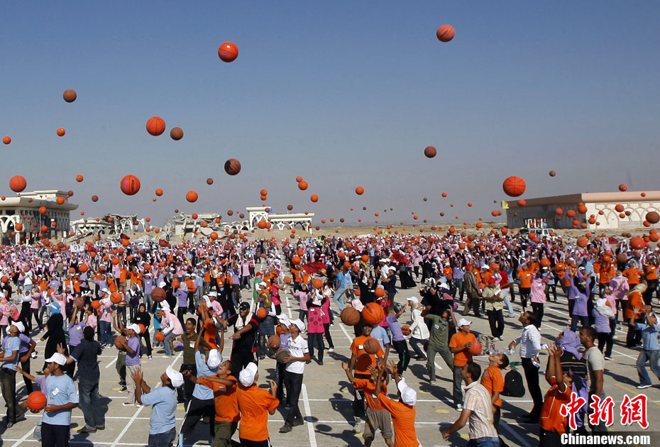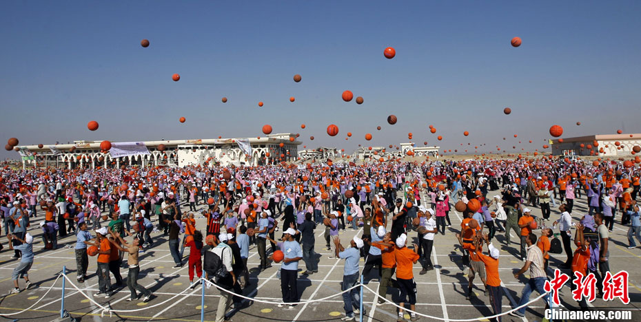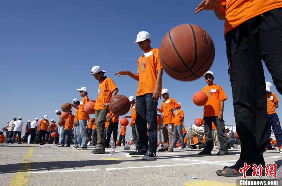 7月22日,加沙地帶7500名巴勒斯坦兒童刷新了最多人在同一地點同時拍籃球的吉尼斯世界紀錄。當日,這些兒童在聯合國近東巴勒斯坦難民救濟和工程處駐加沙地帶辦事處的組織下,來到加沙地帶南部一個遭以色列轟炸后廢棄的機場。“開始”的口令一發出,站成方隊的7500名兒童用單手同時拍起了籃球,連續進行了5分鐘,創造了最多人在同一時間、同一地點拍籃球的吉尼斯世界紀錄。此前,此項紀錄由美國以4600多人保持。
