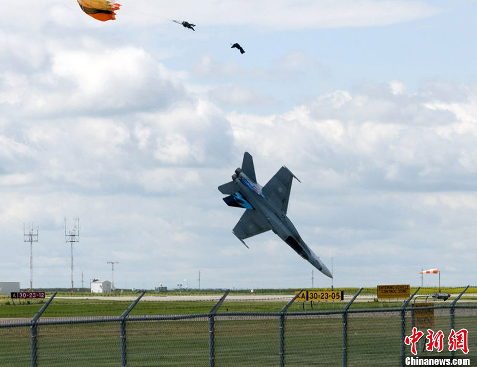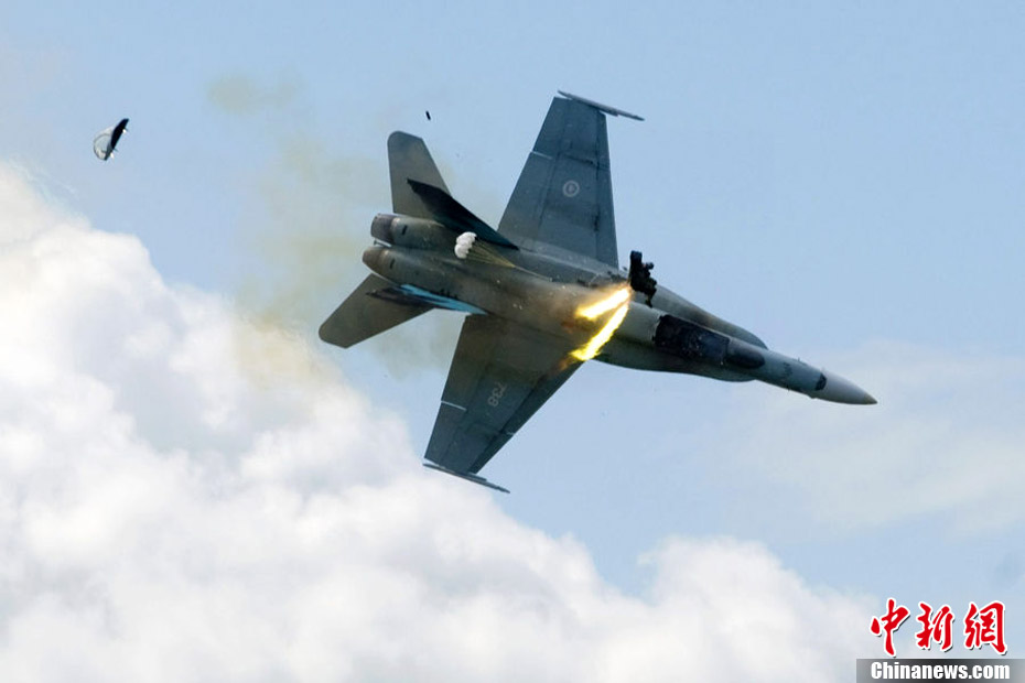 7月23日,在加拿大阿爾伯塔萊斯布里奇機(jī)場,F(xiàn)/A-18C戰(zhàn)斗機(jī)飛行員彈射逃生。飛行員已被送到當(dāng)?shù)匾患裔t(yī)院,是否受傷尚不清楚。事故原因正在調(diào)查中。圖為戰(zhàn)機(jī)墜地爆炸瞬間。