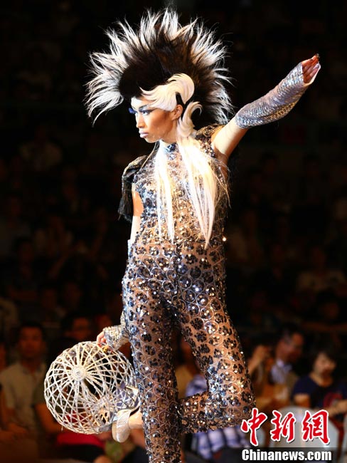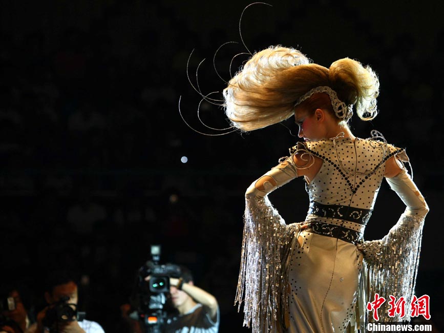 7月28日,為期兩天的“2010中國發(fā)型師藝術(shù)節(jié)”在北京落幕,此次主題為“思想碰撞,演繹潮流”。在當(dāng)日下午進(jìn)行的“2010年中國國際發(fā)型趨勢發(fā)布會”上,包括中國審美在內(nèi)的三家國內(nèi)外知名美發(fā)團(tuán)隊(duì)登場獻(xiàn)技,以古典、時尚、中式、歐美的發(fā)型風(fēng)格,剖析著中國未來發(fā)型的流行走向。中新社記者 富田 攝