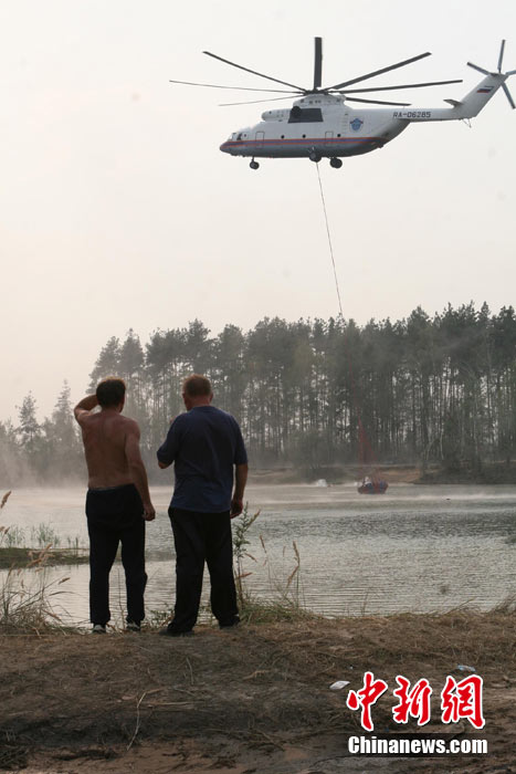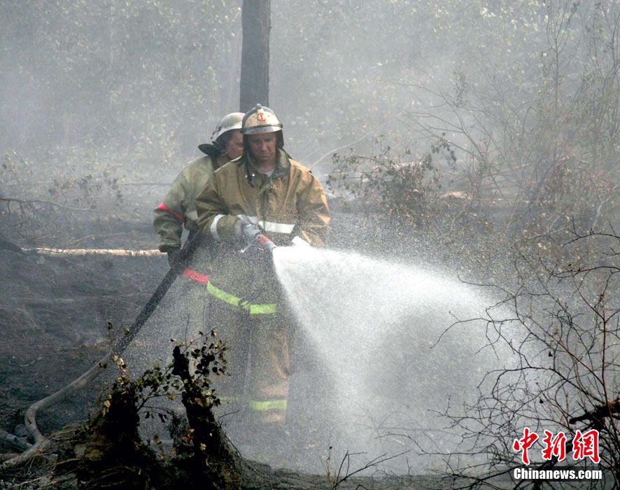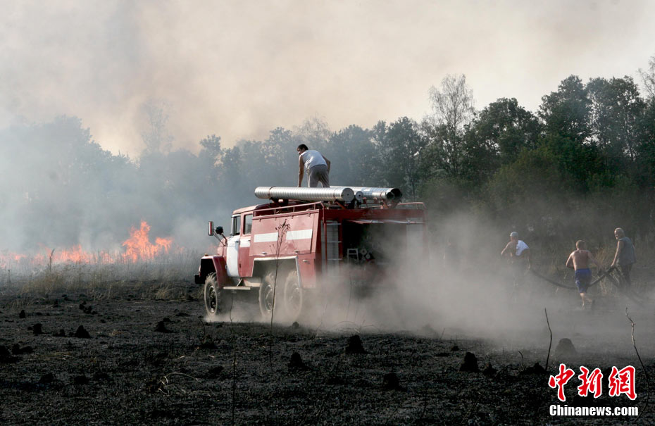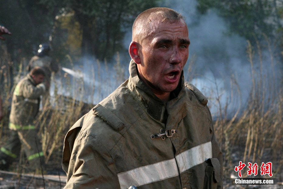 8月5日,在距離莫斯科市區僅15公里處的一家加油站附近突然燃起森林大火,情勢非常危急。當地民眾自發與消防人員全力滅火。中新社發 田冰 攝