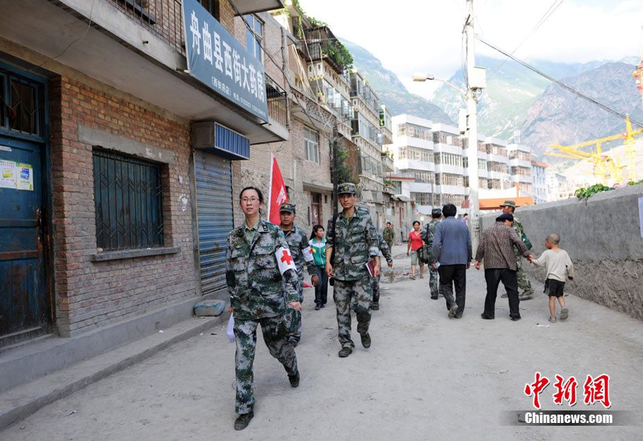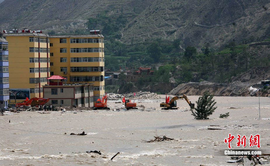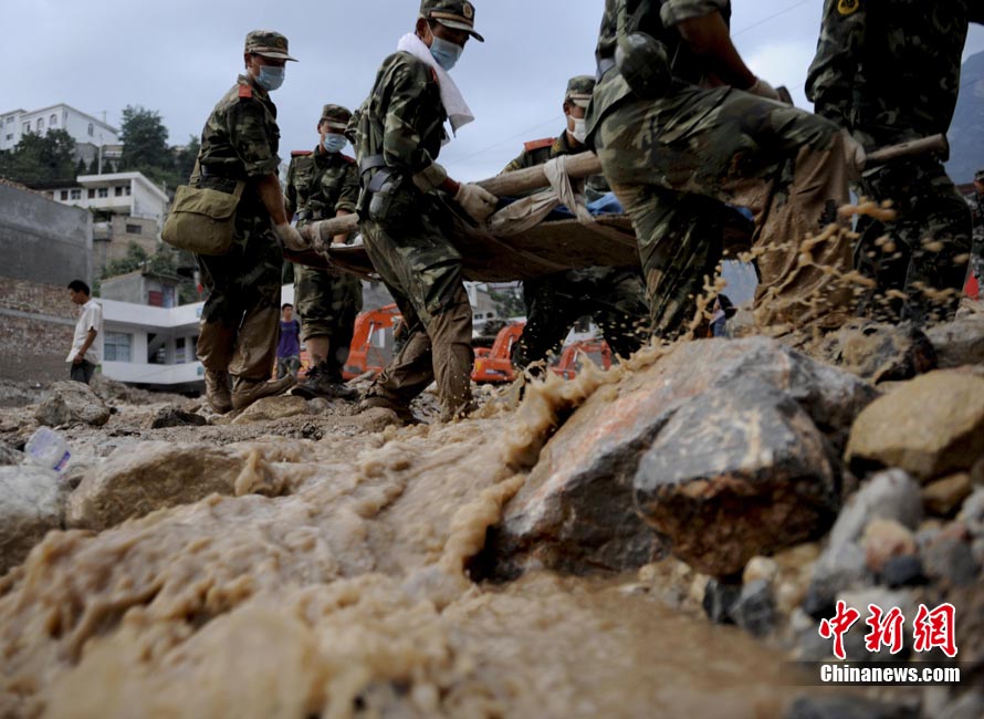 8月9日,甘肅舟曲泥石流災區搜救進入第二天。圖為消防官兵正在搜尋失蹤人員。中新社發 劉忠俊 攝