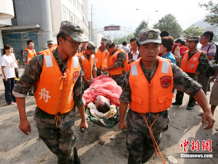 8月10日10時許,甘肅舟曲縣泥石流救援現場的移動大樓附近發現一名幸存者,經過四川廣元軍分區救援人員1小時30分的緊張營救,男子被成功救出。據悉,獲救者叫劉馬勝代,已被埋了近60個小時,今年52歲,是一名殘疾人。目前,有關方面正在緊急調集直升機將其轉移至蘭州救治。中新社發 劉忠俊 攝