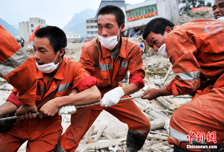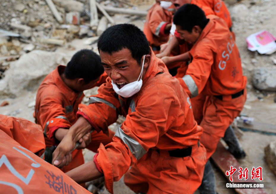 2010年8月11日,甘肅舟曲縣發生特大泥石流災害后的第四天,目前救援工作仍在繼續。截至10日17時,泥石流災害死亡人數已達702人,失蹤人員1042人,42人重傷。中新網記者 金碩 攝