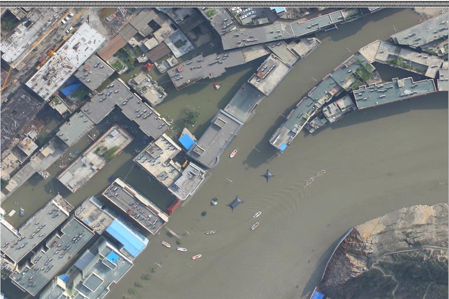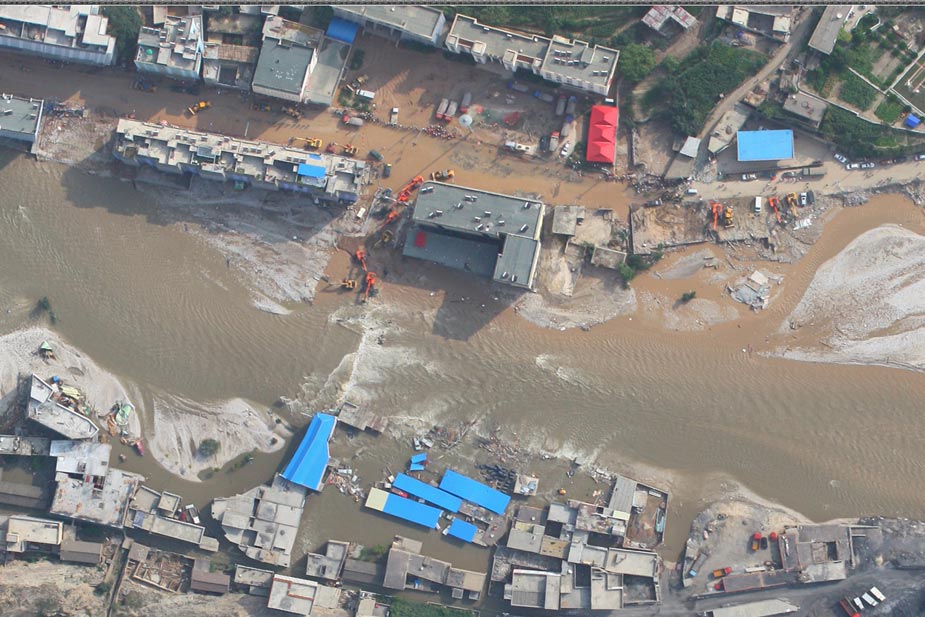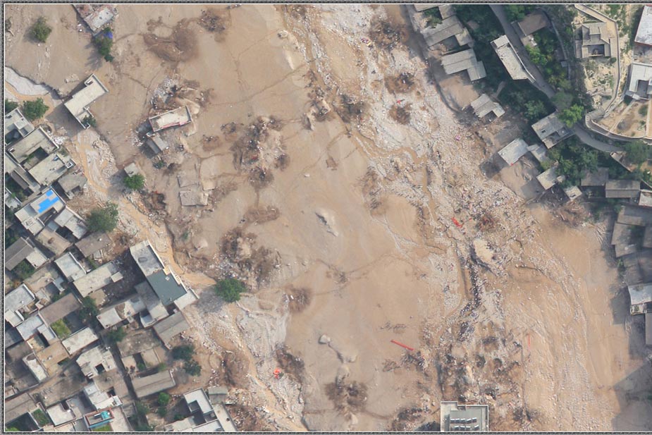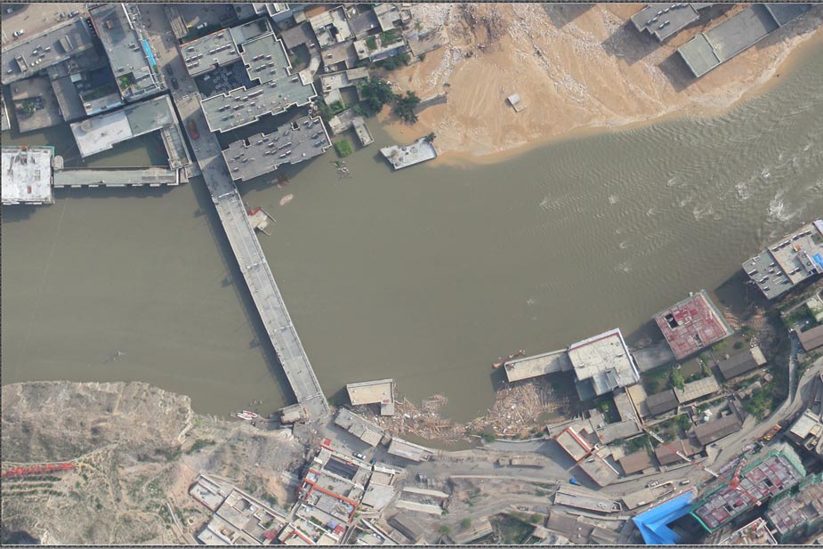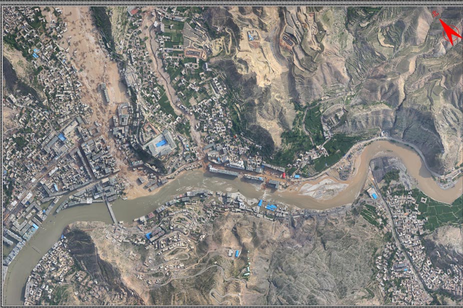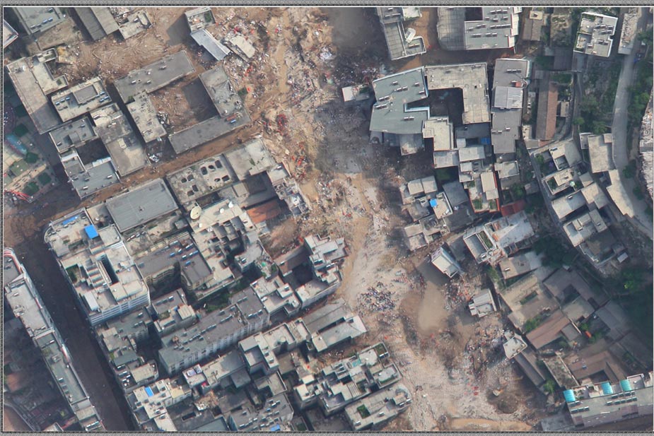 當晚10點,中國測繪科學研究院技術人員利用高分辨率遙感影像數據一體化測圖系統PIXELGIRD,對無人飛機獲取的數據連夜進行鑲嵌、拼接、糾正,獲取了災區高分辨率影像數據。國家基礎地理信息中心以最快速度,運用軟件將這些抽象的數據“變”為直觀的地圖,迅速提供給決策機構和相關部門,供災后重建規劃和建設使用。
